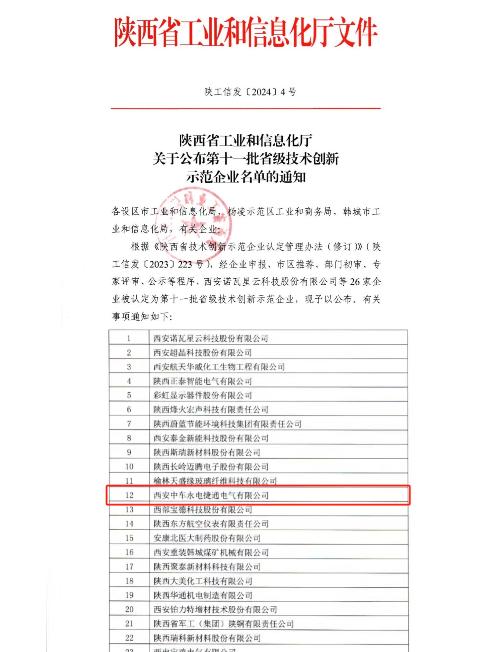 近日,捷通公司分别被西安市科学技术局和陕西省工业和信息化厅评定为“西安市城市轨道交通车辆电气系统工程技术研究中心”和“陕西省第十一批省级技术创新示范企业”。这标志着公司在技术研发能力、技术创新能力、研发平台建设方面再次迈上了一个新台阶。捷通公司将继续以建设技术中心为抓手,引导支持企业自主创新,为公司展现新作为、新担当,谱写公司高质量发展新篇章。